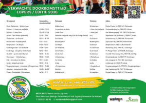 Komende zondag 12 April word de Wolden estafetteloop gehouden. Dit is een hardloopwedstrijd in estafettevorm door de hele gemeente de Wolden waarbij in elk dorp een wisselpunt wordt ingericht. Ook ons dorpshuis De Snikke is een wisselpunt. In onderstaand schema staat vanaf hoe laat we de eerste lopers kunnen verwachten. Iedereen is van harte welkom om de lopers aan te moedigen!!!